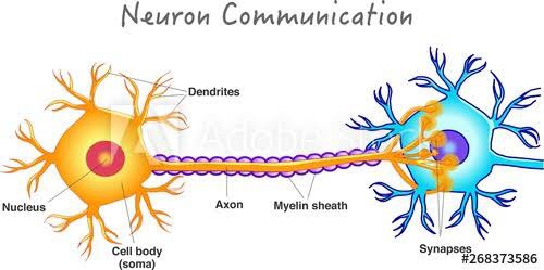 Neuron comprise a cell body (soma), Dendrites, an axon that ends at a terminal.